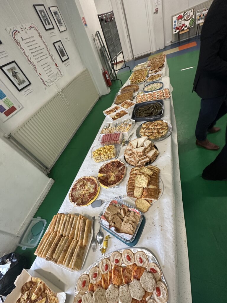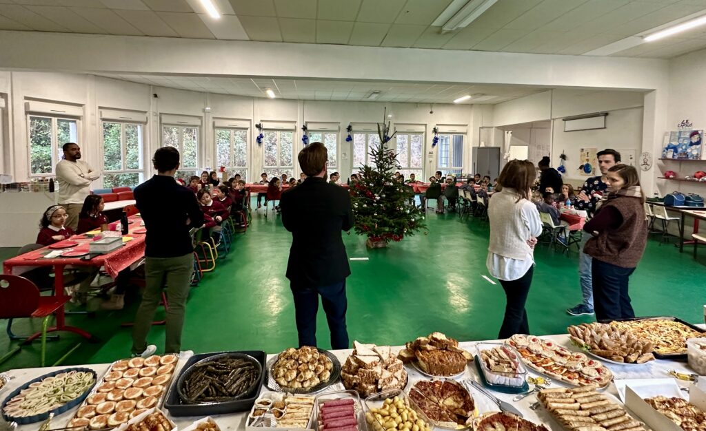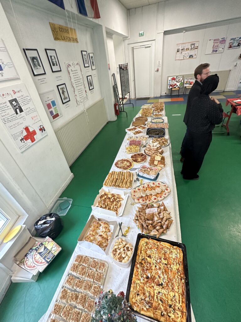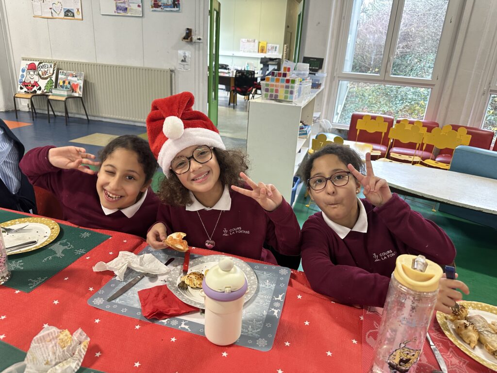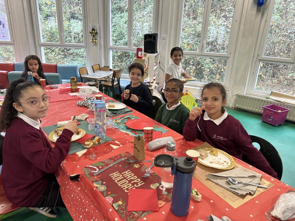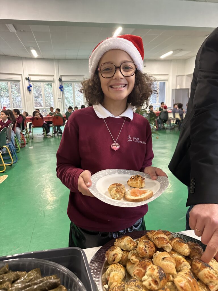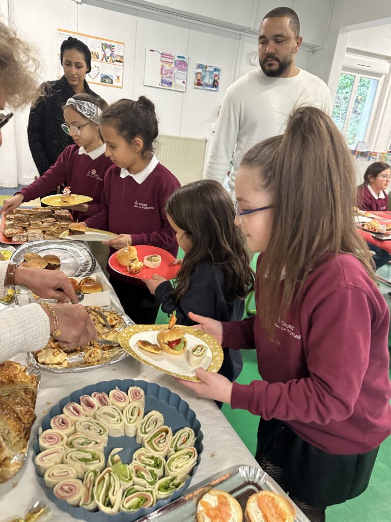 Le vendredi 19 décembre, le Cours La Fontaine a vécu une belle journée placée sous le signe du partage et de la convivialité. Les élèves se sont retrouvés autour d’un grand repas partagé, et ont profité d’un magnifique buffet généreusement garni par les mamans.
